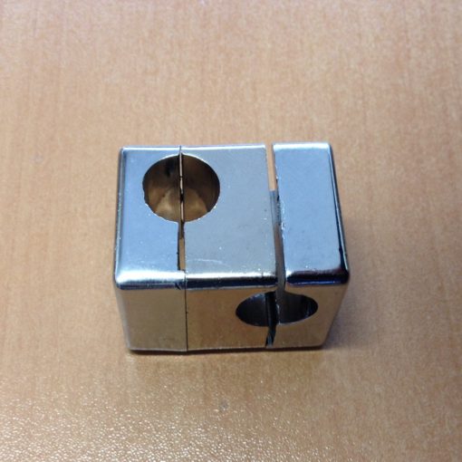 I kromuar, me dimensione 28x28x36mm. I pershtatshem për shufra me diameter deri 14 mm.
