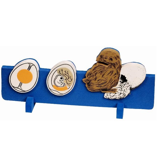 Modeli unik foam me pjesë të çmontueshme. Përshkruan në mënyrë ilustrative tre fazat e rëndësishme nga veza në zog.