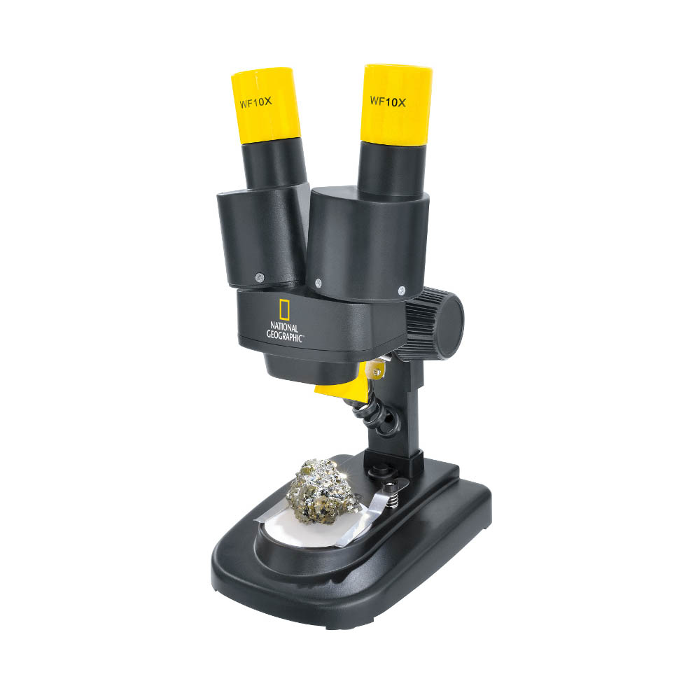 Dy sy janë më të mirë se një! Ka kaq shumë gjëra që mund të gjeni në natyrë dhe mund të zmadhohen deri në 20 herë me këtë mikroskop stereo. Ndizeni dritën, vendosni objektivin dhe eksploroni me stereoskopin e National Geographic!