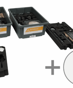 Pajisjet ruhen në një kuti të qëndrueshme, të pileueshme dhe kompakte, duke lejuar kontroll të shpejtë të plotësisë (vendosje me shkumë)