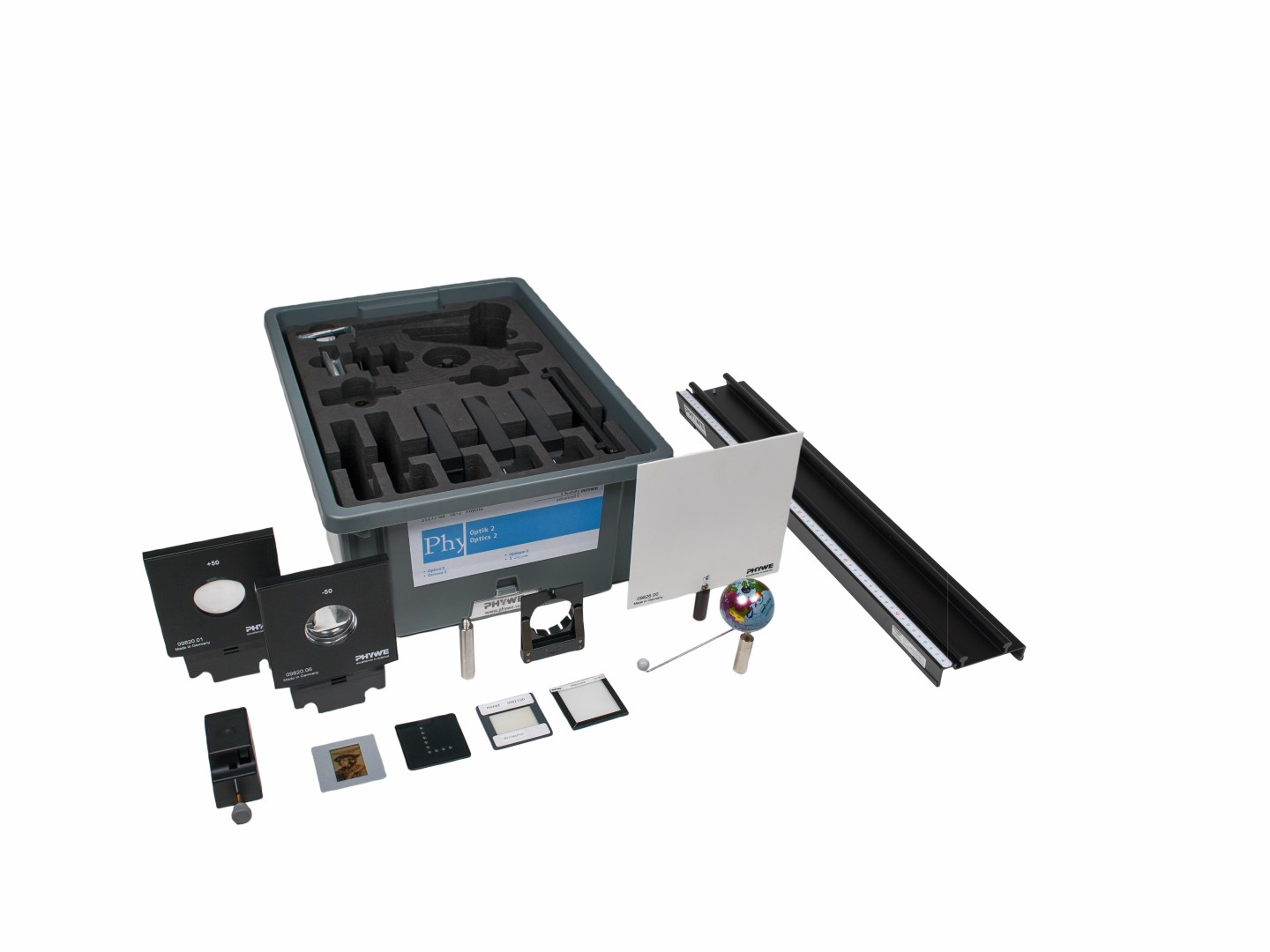 Set pajisjesh ndihmëse për Setin Bazë Optika 1 (1576-88). Përveç eksperimenteve që mund të bëhen me setin Optika 1, është e mundur të kryhen 30 eksperimente mbi temat e mëposhtme: